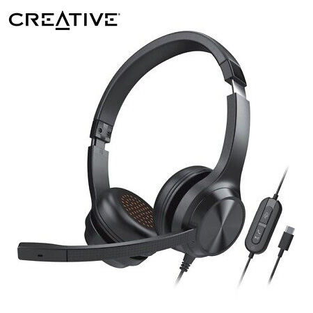 AUDIFONO C/MICROF. CREATIVE CHAT USB 40MM USB-C/ADAPTADOR USB-A NOISE-CANCELLING MUTE BLACK (51EF0980AA000)